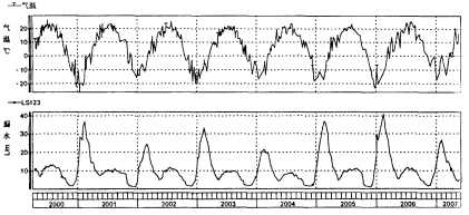 红石电站渗漏量监测项目自动化改造于1999年底完成,2000年正式投入运行,至今已近7年。量水堰自动化观测系统始终运行稳定,观测数据可靠。仅以LS123测点为例,其渗漏量过程曲线见图2.