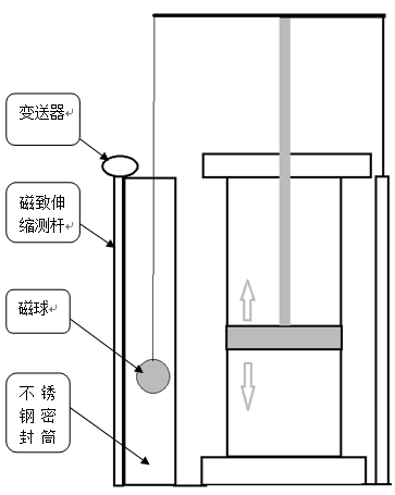 (1)位移传导部分,一端与活塞相连确保传感器(浮子球)与活塞的位移一致。同时考虑活塞和传感器连接线的强度、变形量和风阻等因素,连接线部分选用了316材质的细钢缆。同时增加了磁球的重量来减小风对测量稳定性的影响。而且将磁球部分安装在密闭的不锈钢筒体内, 将风、水汽、油气等干扰因素隔绝,保证了仪表的可靠性和稳定性。