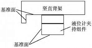 然后调整顶部与底部磁致伸缩液位计夹持装置的相对位置,使二者的垂直基准面与竖直背架基准面之间的距离相同,保证处于同一铅垂面垂直于安装平台。
