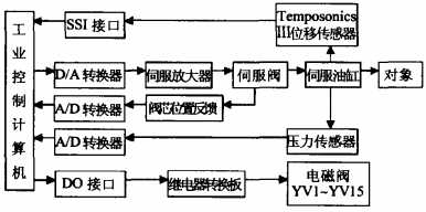 本系统是一个高精度、高响应的控制测试系统,要求控制测试精度达到5μm。所选用的TemposonicsⅢ系列磁致伸缩位移传感器采用SSI数据输出方式,而SSI接口板则用ISA-Basic板卡,该板卡内有80C320微处理器,有2个通道的SSI接口,内置时钟28MHz,ISA-Basic板对1个循环的数据采集占用1kbyte的内存,除此之外,ISA-Basic板卡上还有隔离模入、模出通道各2个,有A/D8个通道。