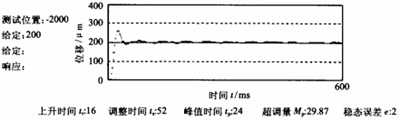 被测对象是一个结晶器振动系统的液压控制系统,所用传输线为7m。图中所有位移的单位是μm,从测试结果可以看出,稳态误差为2μm,也就是说分辨力可以是2μm。在某硅钢厂ZR2和ZR1轧机改造中,在现场离线测试时,传输线为100m,经参数调整后,分辨力为4μm。
