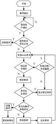 SPA(Single-page Web Application)是指通过单个HTML界面完成用户交互与动态更新的应用程序。SPA的优势在于构建Web界面所需的资源仅需加载一次,其后通过JS脚本和少量的数据交互即可完成页面内容的更新,从而提高了Web界面的响应速度。本文根据SPA规范设计了Web前端并使用AJAX(AsynchronousJa-vaScriptandXML)完成数据的异步更新[11]及界面的局部刷新[12]。当便携式设备接入无线网络并访问指定IP地址后,手操器将存储其中的Web资源上传并在浏览器成功加载后开始运行其中的JS脚本。为了满足Web界面与传感器的交互需求,JS脚本实现了以下几个功能:1)将Web界面中的各个按钮与CGI对应的URL绑定。2)以固定频率向手操器发送位移请求,并将该请求对应的响应包作为心跳包以判断便携式设备与手操器的连接状态。3)根据协议规范解析响应包并通过DOM操作调整Web界面的显示内容。4)发生指定异常时,通过浏览器的弹窗显示异常信息,异常分类如表1所示。JS脚本的具体执行流程如下图所示。