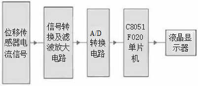 整个控制系统的软件开发是在SilabIDE开发环境中进行的。软件以keilC语言编写,具有良好的可读性和可维护性,本软件为嵌入式系统应用软件,直接进行底层开发,不需要嵌入式操作系统支持,依靠MCU指令集和中断系统完成整个处理流程。其软件流程图如下图所示:当系统上电时,单片机系统对各个模块进行初始化,然后进入自循环模式,单片机会根据采集到的位移传感器信号进行处理并在液晶显示器上进行显示。
