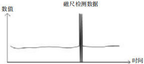 该产线投产以来,现场多次出现磁致伸缩位移传感器故障,造成设备状态异常,出现堆钢和停浇故障,严重影响了连铸连轧产线生产优势的发挥。而磁尺故障主要表现在磁致伸缩位移传感器检测数值发生瞬间跳变(见下图),超出检测设备所能动作的最大、最快能力范围,进而对控制系统的实时检测判断造成影响,导致设备控制动作错误。