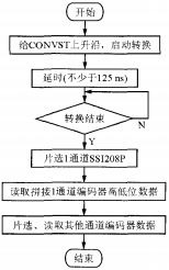 编程采用BorlandC++Builder,调用PCI-1716的驱动程序操作各输入输出端口,在各输入输出端口上产生满足SSI208P的控制逻辑即可启动转换,采集数据。由图2可以看出SSI208P模块的启动转换控制和数据读取操作比较简单,软件流程如图4所示。