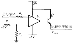 电压比较电路是工业控制中经常遇到的信号处理方法,主要作用是根据电路性能的需要,预先设定好一个门限电压,实现输入信号电压与门限电压的比较,从而输出高、低电平。如图4所示,利用差模放大后的电压信号与门限电压比较,产生一个PWM信号,脉冲宽度与发射激励电流脉冲和接收到电压脉冲的时间间隔成线性比例。