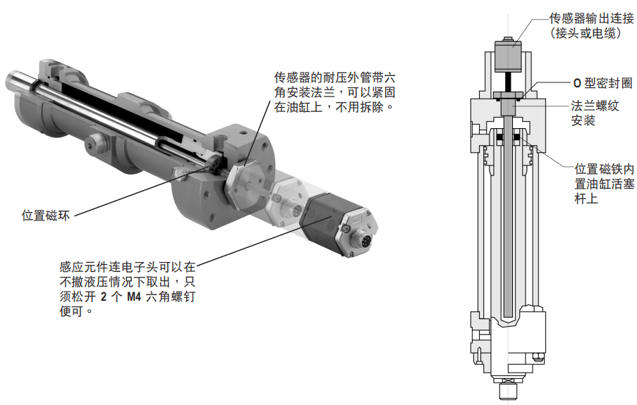 RH 型磁致伸缩位移传感器油缸安装