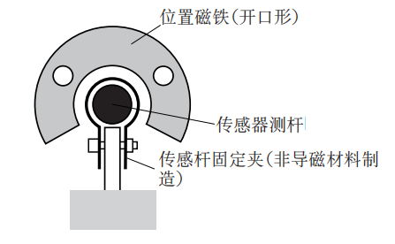 位置磁铁 – 为了保证测量的精确性,位置磁铁的安装支架必须用非导磁材料制造(如螺丝 、隔离垫片与支撑等)。关 于磁铁的正确安装与尺寸要求,请参考下图的磁铁安装指引。