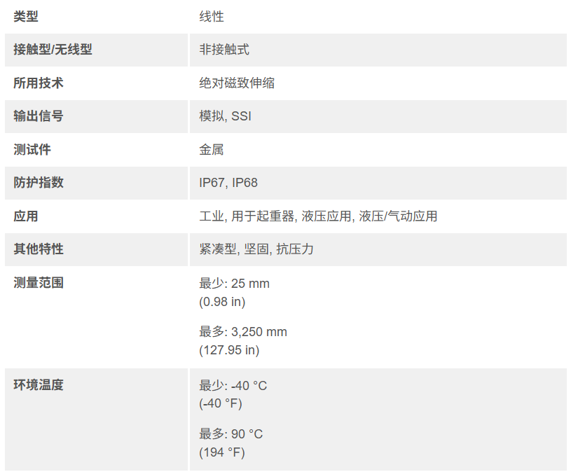 GBS型号是由Temposonics公司生产的,是一种磁致伸缩位移传感器,有大量的机械选项、接口和性能。它有编程工具,可以灵活地适应各种应用,并有模拟或数字启动/停止输出,可以非常容易地进行编程。该装置有一个模拟输出,行程长度为50至2000毫米,还有一个SSI输出,行程长度为25至3250毫米。它的模拟输出具有无限的分辨率。